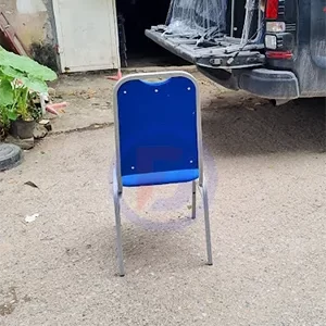 Ghế có kích thước phù hợp với không gian hội trường. Ghế có thể xếp chồng lên nhau để tiết kiệm diện tích khi không sử dụng. Khung ghế có độ bền cao và chịu được tải trọng lớn. Đệm ghế được bọc vải nỉ màu xanh, có độ dày vừa phải, êm ái và thoáng mát. Màu xanh của đệm ghế tạo nên sự tươi mới, thanh lịch và hài hòa cho không gian hội trường.